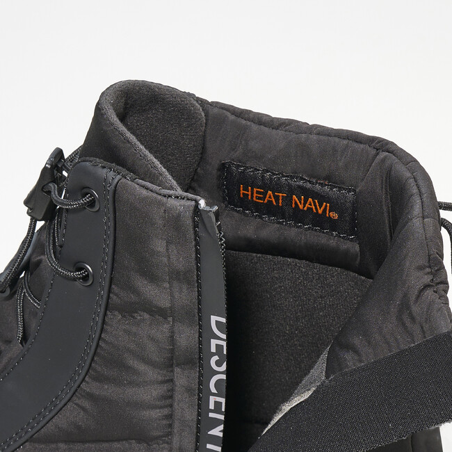 太陽光の赤外線を含むほぼ全ての光の波長を熱に変換する『デサント』独自の蓄熱保温素材「ヒートナビ」を肌に接する面に採用。また、インソール表面には蓄熱素材の「ベルセラ」を採用することで防寒性を向上。