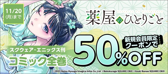 ■新規会員限定クーポンで『薬屋のひとりごと』スクウェア・エニックス刊コミック全巻が50%OFF