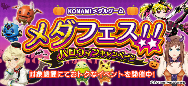 株式会社コナミアミューズメントは、アミューズメント施設向けメダルゲームにて「KONAMIメダルゲーム メダフェス!! ~ハロウィンキャンペーン~」を10月27日(金)から開催することをお知らせします。