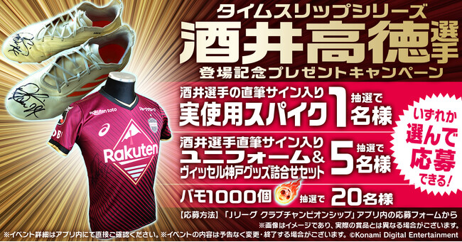 さらに酒井高徳選手が「タイムスリップシリーズ」に登場することを記念した、サイン入りグッズプレゼントキャンペーンや、「レギュラー2023 vol.2」の登場を記念して、ジュビロ磐田・ヴィッセル神戸のサイン入りグッズが当たるプレゼントキャンペーンも実施中です!!