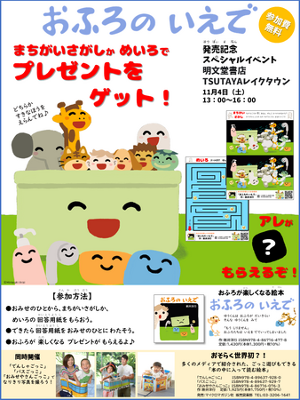 おふろが楽しくなる絵本『おふろの いえで』発売記念スペシャルイベントを明文堂書店TSUTAYAレイクタウンにて11月4日に開催!