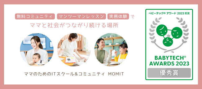 今回、国内で流通するベビーテック商品やサービス・育児家電を表彰する「BabyTech(R) Awards 2023」にて、ママ向けオンラインITスクール「MOMIT(マミット)」が 「キャリア支援部門 優秀賞」を受賞いたしました。