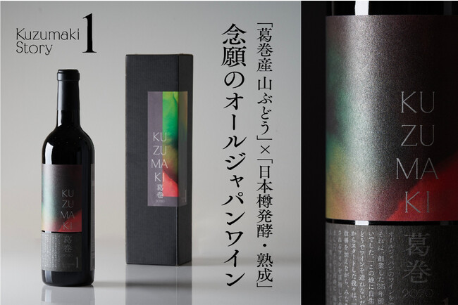 構想10年を経て誕生した日本の古来種である山ぶどうをミズナラで作った樽で発酵・熟成させたオールジャパンワイン「Kuzumaki Story 1」(株式会社岩手くずまきワイン)は、至極豊穣な味わいと薫りで話題となり、限定300本が即完売。
