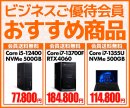 ビジネスご優待会員様向けに『ビジネスご優待会員 おすすめ商品』を実施中です。担当スタッフがおすすめするパソコン、中古商品、PCパーツ・周辺機器をズバリ価格でご用意しております!この機会にぜひご購入検討ください。