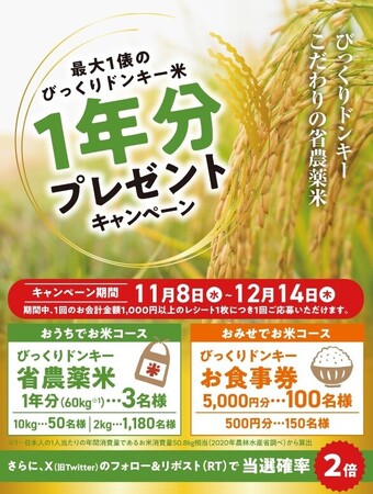 ・タイトル:「最大1俵のびっくりドンキー米1年分プレゼント」キャンペーン