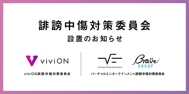株式会社viviON(東京都千代田区、代表取締役:明石 耕作、以下「弊社」)は、誹謗中傷やつきまといなどの攻撃的行為から、弊社所属VTuber・クリエイター及び従業員の権利を守り事業を円滑に推進するため、「誹謗中傷対策委員会」を設置したことをお知らせいたします。