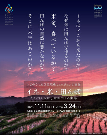 静岡県の自然系博物館「ふじのくに地球環境史ミュージアム」(所在地:静岡市駿河区)では、11月11日(土)から、企画展「イネ・米・田んぼ-人がつくる米_米がつくる世界-」〔期間:令和5年11月11日(土)~令和6年3月24日(日)〕を開催します。本展では、東アジアの稲作や米食文化に焦点を当て、「米とは何か?」を問い直します。