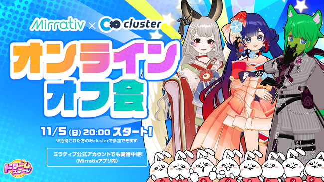 スマホゲーム配信者数で日本一※のゲーム配信プラットフォーム「Mirrativ(ミラティブ)」(以下、Mirrativ)を運営する株式会社ミラティブ(本社:東京都目黒区、代表取締役:赤川隼一)は、クラスター株式会社(本社:東京都品川区、代表取締役CEO:加藤直人)の運営するメタバースプラットフォーム「cluster」上で、ユーザーと「オンラインオフ会」を11月5日より開催することをお知らせいたします。