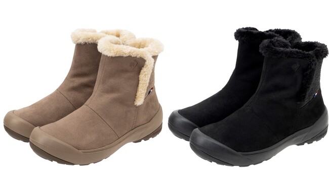 スエード調の上品な素材感にさりげないヒールアップ設計で、ボトムスを選ばないショートタイプのウィンターブーツ。フェイクファーを内装することでスッキリとした見た目と暖かさを両立しました。防水仕様に、軽量かつすべりにくいソール設計を採用し、雨などのシーンでも着用できます。※完全防水ではありません。