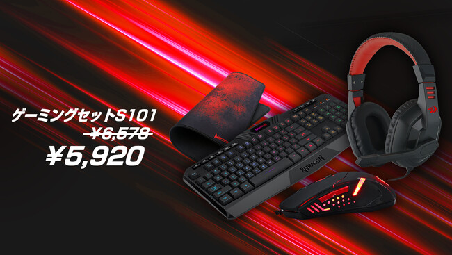 REDRAGON キーボード、マウス、ヘッドセット、マウスパッド4点セット 通常価格6,578円(税込み) → 限定価格5,920円(税込み)