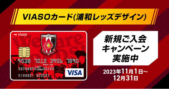 三菱UFJニコスは11月1日から12月31日まで、「VIASOカード(浦和レッズデザイン)」の新規入会で、浦和レッズ所属8選手(興梠・西川・酒井・明本・伊藤・ショルツ・中島・岩尾の各選手)の勇姿を1枚にプリントした限定のフェイスタオルがもれなくもらえる「浦和レッズ応援キャンペーン」を実施します。