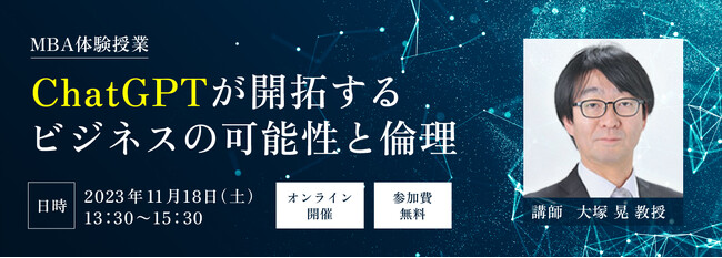事業創造大学院大学「ChatGPTが開拓するビジネスの可能性と倫理」11/18(土)13:30~ MBA体験授業 開催