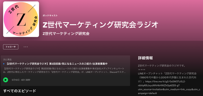 ※Z世代マーケティング研究会ラジオ https://open.spotify.com/show/3D2nIFbyDXt6l4V2Y7kx4R?si=29f36016505a4c02