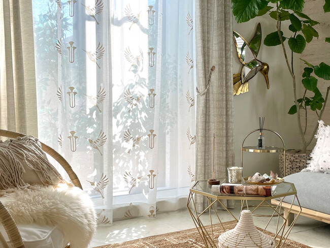 厚地カーテンとレースカーテンは同じ世界観で作っており、どのデザインも相性良く組み合わせることができます。様々なアイディアでコーディネートをお楽しみいただけるカーテンシリーズです。