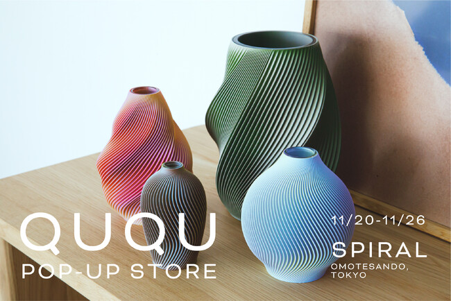 3Dプリンティングを専門とするデザイン事務所、株式会社積彩(本社:東京都大田区 、代表取締役:大日方伸)が展開する、3D Printed Lifestyle Products「QUQU(クク)」は、2023年11月20日(月)から11月26日(日)までの期間限定で、スパイラル(東京・表参道)にてPOPUP STOREをオープンいたします。