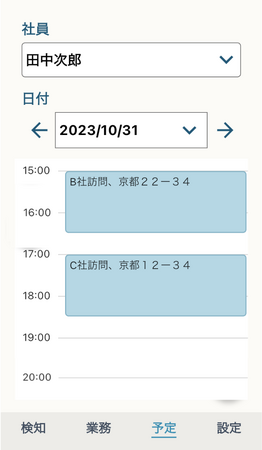 【車両予約・社員の予定管理画面(スマートフォン版)】