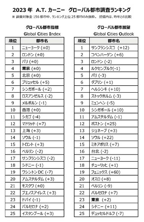 【A.T. カーニー 2023 年グローバル都市調査】