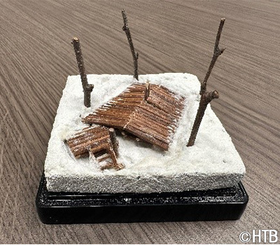 2022年夏の一般公開で限定48個が完売した「ミニチュア水曜どうでしょうハウス(爪楊枝細工)」が、今回の冬公開で新たに“崩壊バージョン”で復活!どうでしょうハウスで、一般公開会期中に、数量限定で販売予定です。