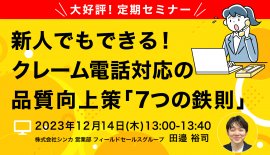 大好評!定期セミナー クレーム対応は脱属人化がカギ! 「新人でもできる!クレーム電話対応の品質向上策『7つの鉄則』」開催