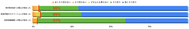 ⚫︎97% の生徒が「地球規模の課題への関心が高まった」と回答