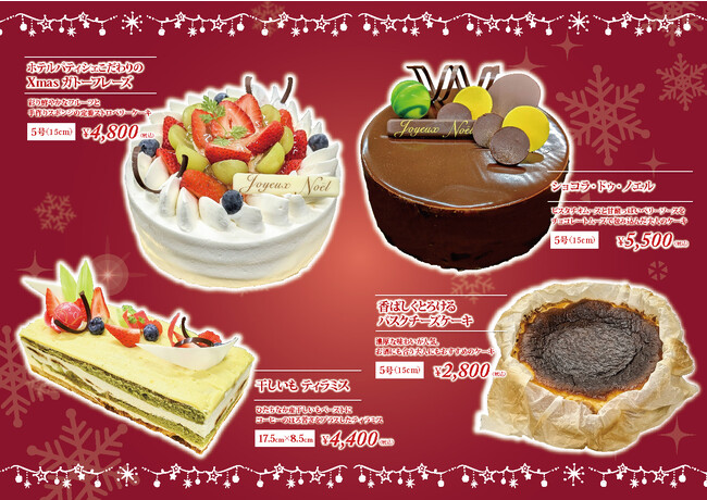 シェア9割を誇る「ひたちなか特産干しいも」を使ったティラミス等、ホテルパティシエ特製4種のクリスマスケーキを販売