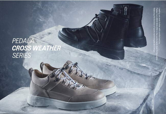 濡れた路面や凍結した路面でも高いグリップ力を発揮するウォーキングシューズ「PEDALA CROSS WEATHER」を発売