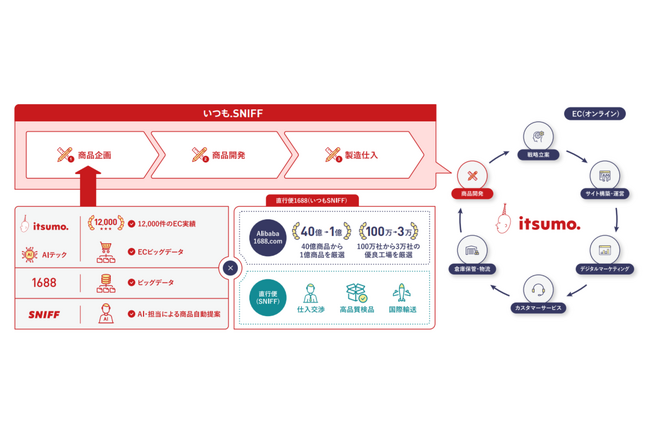 株式会社いつも(本社:東京都千代田区、代表取締役社長:坂本 守、証券コード7694)は、2023年11月より杭州直行便供应链有限公司(本社:中国杭州市、CEO:吴烨彪、以下「SNIFF」)と提携し、主に日本のEC事業者や個人クリエイター、インフルエンサーを対象に、中国国内で流通する商品やOEM・ODMによる商品の製造を行う商品企画支援サービスの提供を開始します。これに先立ち、2023年10月に本事業の展開を行うため、当社の100%子会社である株式会社いつも.SNIFF(本社:東京都千代田区、代表取締役社長:坂本 守、以下「いつも.SNIFF」)を設立しました。