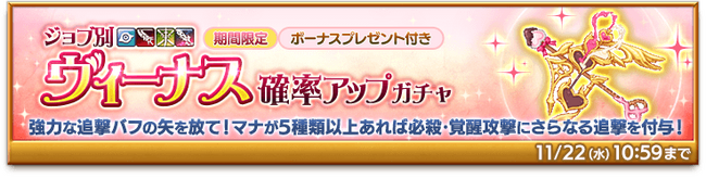 ■強力なバフの矢を放て!「ジョブ別 ヴィーナス確率アップガチャ」販売中!