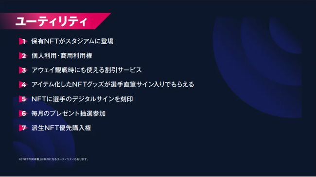 CEREZO OSAKA SUPPORTERS NFT保有者には、サポーターがより楽しく、熱く応援できる「NFT保有者特典」を付与しており、様々なシーンで活用いただく事ができます。