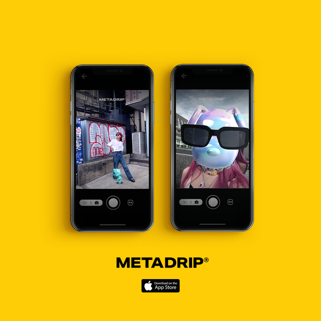 METADRIP は、3DCG で生成されたNFTをはじめとしたデジタル資産をスマートフォンのカメラを通じて、AR( 拡張現実 ) で着用/体験できる App Store向けスマートフォンアプリ。今後の展開としては、順次、ラインナップを追加し、NFT として発行されていれば、ホルダーのみが着用/体験できるようになる計画です。「METADRIP」はデジタル資産に新たな実用性のレイヤーを加え、ARテクノロジーを通じて着用を可能にすることで、あらゆるブランドやクリエイターと接続し、マスアダプションを促進します。