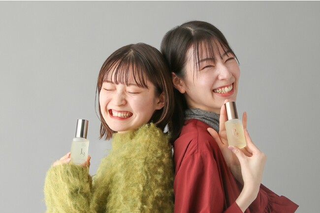 華やかなフローラルジャスミンの香り[play]と、爽やかなシトラスレモンの香り[joy]。WEBにて展開するコラボコンテンツでは、それぞれの香りにO0u(オー・ゼロ・ユー)のプレスが一推しするコーディネートをペアリングしました。お出かけ前の仕上げにひと吹きしていただくことで、重なり合う精油の香りが冬のスタイルを印象的な装いにしてくれます。