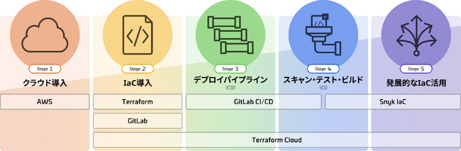これからIaCに取り組むお客様に向けて、導入のステップや最適なツール・サービスの組み合わせを診断できる「IaCジャーニーマップ」を元にした提案を行うとともに、TerraformやSnyk Infrastructure as Code(Snyk IaC)、GitLabを中心としたツール群を「IaC導入支援パッケージ」として提供します。