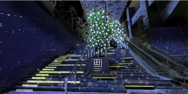 グランドオープンを記念し、同日の日没時より、ペデストリアンデッキやB1Fのサンクンガーデンなどの敷地内にイルミネーションが点灯します。コンセプトは“Brighting people”で、木々から零れ落ちる光が地面や建物、人々をあたたかく染め上げます。田町駅前国道15号沿いにある「新田町ビル」「田町センタービル」「第二田町ビル」敷地と同時点灯を予定しており、田町駅三田口が一斉に、華やかに照らされます。