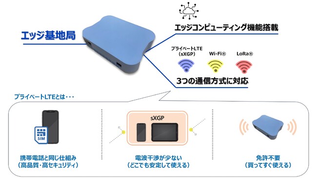2. プライベートLTE、Wi-Fi(R)、LoRa(R)(※1)の3つの通信方式に対応しているため、多種多様なIoTデバイスを繋ぐハブのような役割を実現