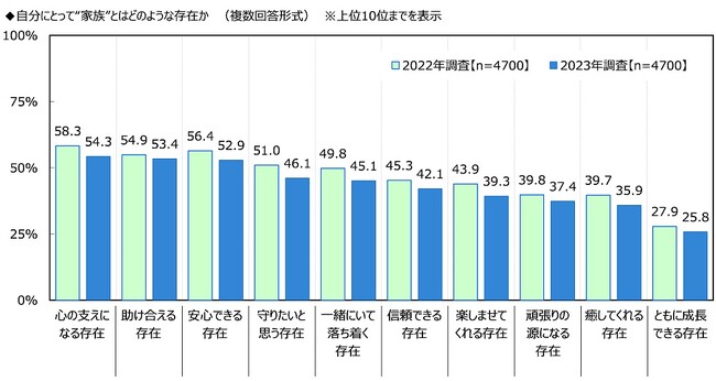 自分にとって“家族”とはどのような存在? 1位「心の支えになる存在」2位「助け合える存在」3位「安心できる存在」