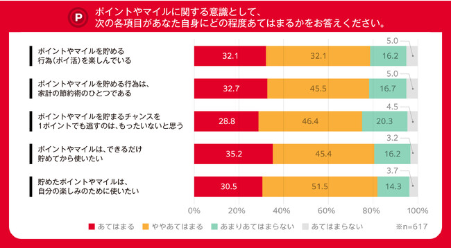 ■図6:ポイントやマイルに関する意識として、次の各項目があなた自身にどの程度あてはまるかをお答えください。(ゴールドカード保有者 n=617)
