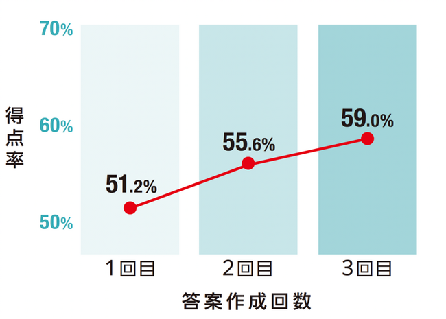 ■1回目はできなくても3回目にはできる。得点率が約9%向上!