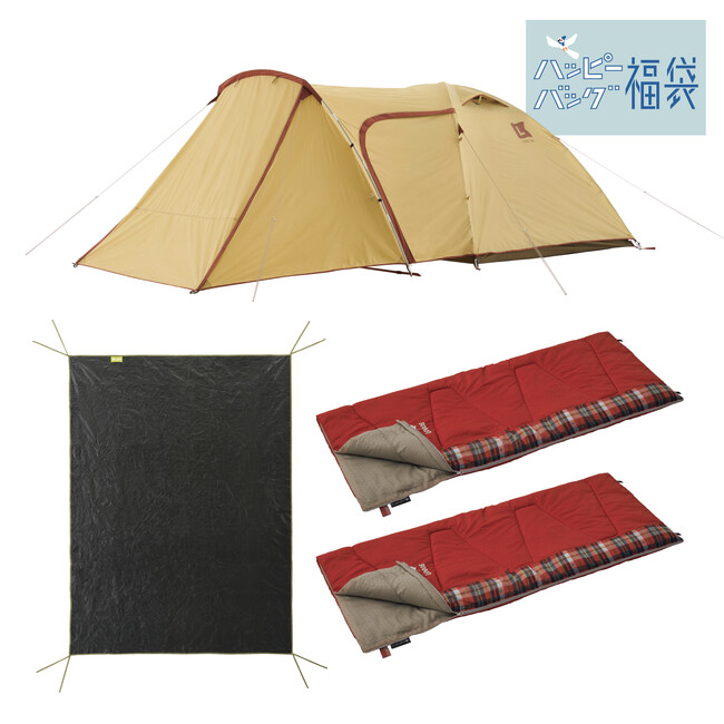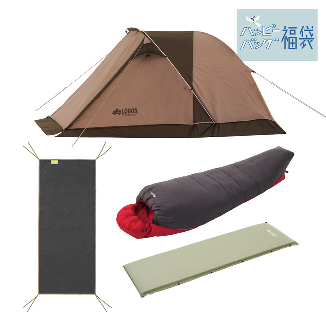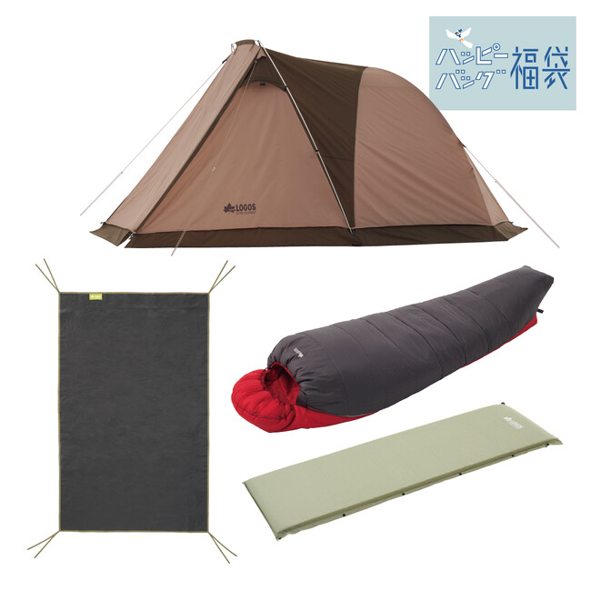 「福袋ハッピーバッグ」は、LOGOSの人気アイテムであるテントやシュラフがセットでお得に購入できるセットです。今年は購入店舗により、バリエーション豊かなセットの中からご自身のスタイルに合わせてお選びいただける、さまざまなセットをご用意しております。