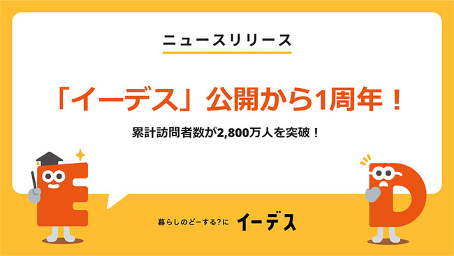 暮らしの「まよい」を解決する情報メディア「イーデス」公開から1周年!累計訪問者数が2,800万人を突破!