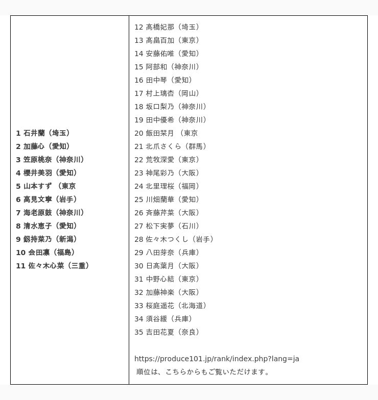 次のステージに進出する練習生35名が決定!『PRODUCE 101 JAPAN THE GIRLS』<速報>第2回順位発表式結果報告
