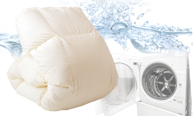 本製品は“アレルGプラス”加工を施し、羽毛の「親水性」を大幅に向上させることで、コインランドリーでの洗濯を可能にしました。