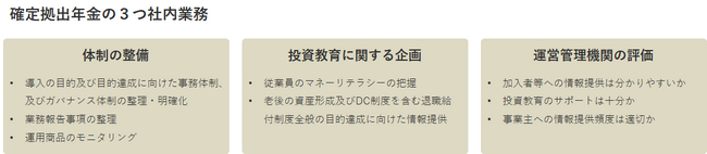 様々な改正を繰り返しながら、事業主が担う責務は増え、制度の運営体制整備から投資教育の企画・実施、そして運営管理機関の評価に至るまで、人事部の負担は増してきています。