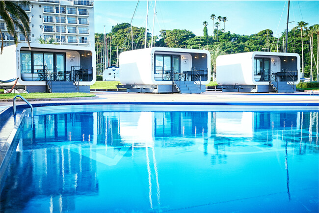『自然と同期する』をコンセプトにした日本初の近未来デザインのトレーラーホテルが、富士山を望み相模湾に面した、都心から約60分の「リビエラ逗子マリーナ」、約80分の「リビエラシーボニアマリーナ」に2022年7月7日同時オープン。刻々と変化する幻想的なサンセットなど地球・宇宙を感じる非日常空間で、時間の移ろいを堪能いただくため前面ガラス窓を採用した客室は、全棟オーシャンビュー。プライベートテラスにはバーデプールやBBQセットを完備し、ドッグフレンドリールームも用意しています。セルフロウリュが可能な宿泊者専用のサウナを設け、海を眺めて「ととのう」時間を大切にしています。また、滞在や食事、アクティビティを通じて海や地球の循環・再生を体感し、サステナビリティも意識できるコンテンツをご提案。心の中にSPACEをつくりマインドを整え、そして人生のKEY POINTとなる時間を提供します。