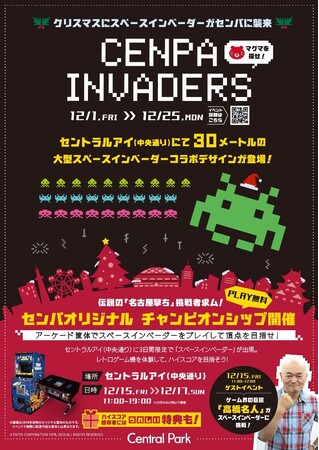 セントラルパークは、株式会社タイトー協力の下、誕生45周年を迎えた「スペースインベーダー」満載のコラボジャックを12月1日(金)~25日(月)開催いたします。