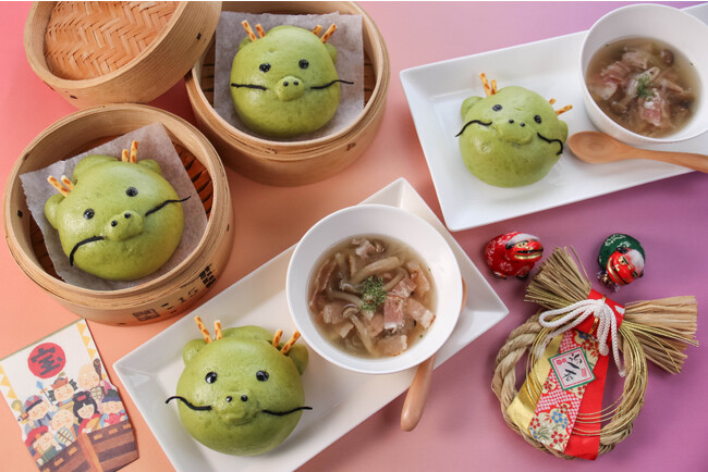 2024年の干支「辰」の中華まんを作りましょう!ホウレン草パウダーを入れた緑色の生地で、ウインナーソーセージやチーズ等を包んでピザまんを作ります。寒い季節にぴったりの温かいスープと共に召し上がれ。