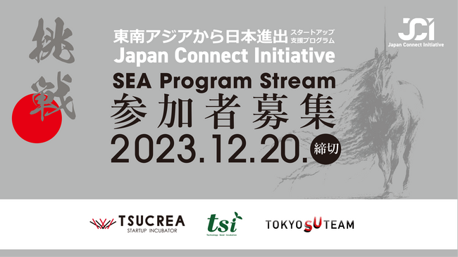 株式会社ツクリエ(本社:東京都千代田区 代表取締役:鈴木英樹 以下、ツクリエ)が共同事業者 ティーエスアイ株式会社(以下、ティーエスアイ)とともに運営する、東京都が実施する「TOKYO SUTEAM」の採択プログラム「Japan Connect Initiative(以下、JCI)」は、東南アジア4か国(インドネシア、マレーシア、ベトナム、シンガポール)から日本進出を目指すスタートアップを支援するプログラムの参加者募集を開始しました。募集の締め切りは2023年12月20日(水)です。