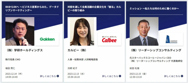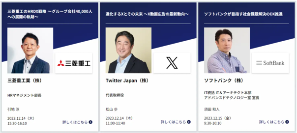 また併催セミナーでは、Twitter Japan、日本マイクロソフト、ソフトバンク、ANA、カルビーなど業界トップ企業の役員などが連日登壇。DX化、働き方改革、経営課題解決の最新事例を学べます。