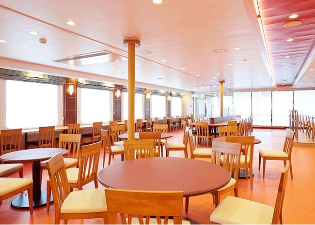 船内には、大浴場に露天風呂・レストランなど、船旅ならではの大海原の景色を眺めながら、