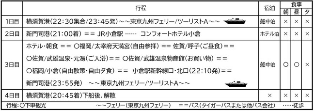 利用船舶は、2021年就航の東京九州フェリー「はまゆう」「それいゆ」