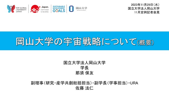 「岡山大学の宇宙戦略について(概要)」岡山大学 学長定例記者会見発表(2023年11月)